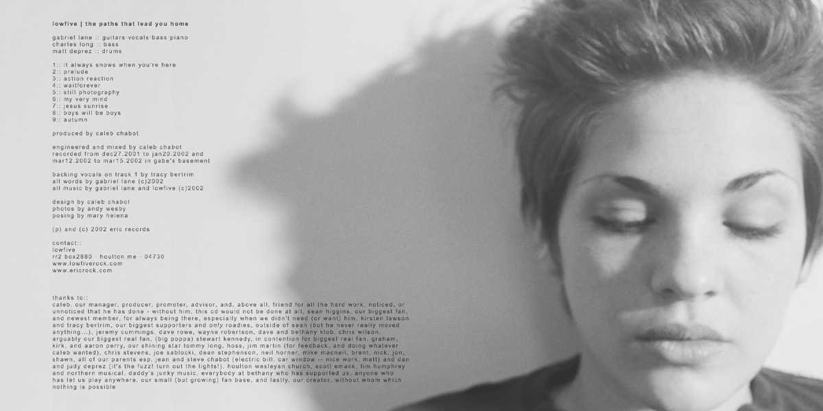 Recorded in Gabe's basement during January 2002, PATHS sees Lowfive settling into their own style on tracks like Boys Will Be Boys and Jesus Sunrise. Truly a project album complete with layered acoustic guitars and piano, PATHS has no evidence of the "No Conform"-era ska influence, and showcases the emergence of melodic indie-rock similar to Pop Unknown/The Foo Fighters/The Impossibles/Piebald.